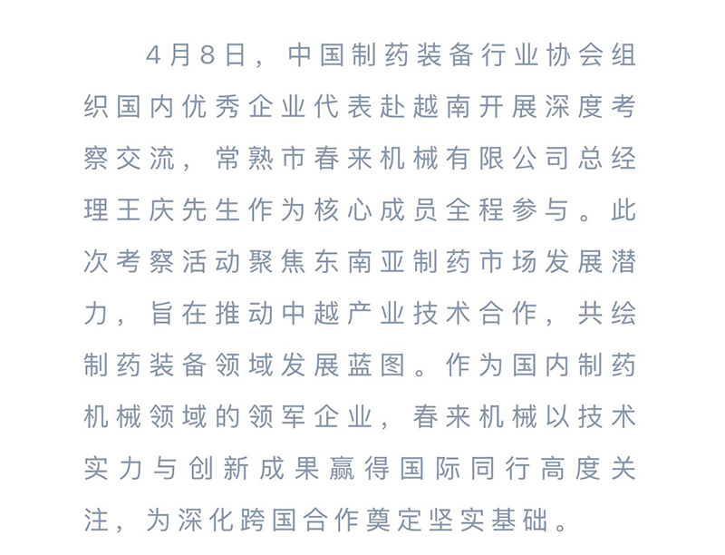 乐竞(中国)lejing·官方网页版王庆总经理赴越南考察,共探制药装备行业新机遇